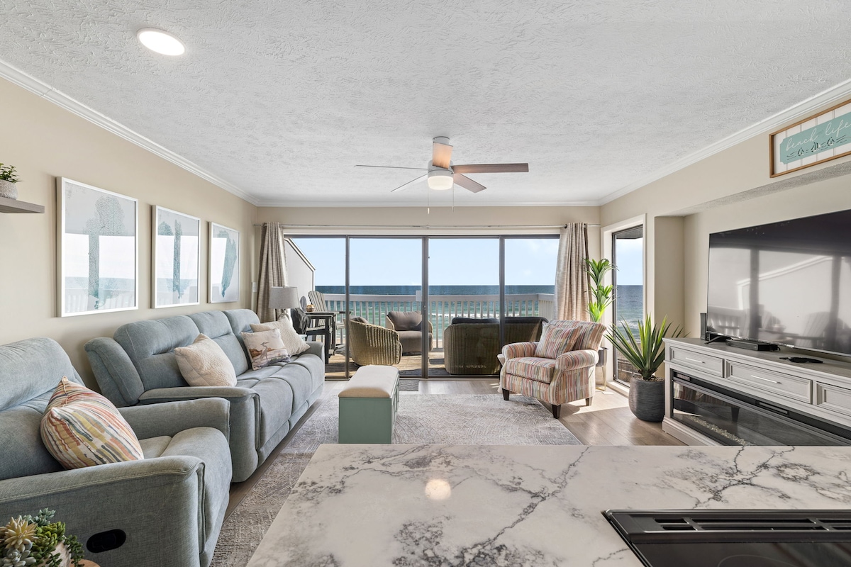 Retiro de playa en el primer piso con vistas al mar. Disfruta del café por la mañana o del cóctel por la tarde desde el balcón. El apartamento se ha actualizado recientemente con electrodomésticos modernos, que incluyen nevera, estufa/horno, microondas y excelentes baños nuevos. Se proporcionan tumbonas y sombrillas. ¡Camina hasta el bar tiki para disfrutar de música en vivo!