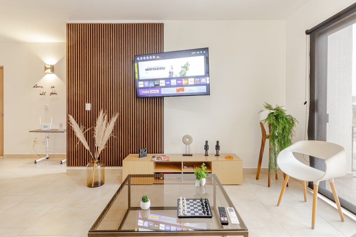 "¡Bienvenido a tu refugio de lujo en el corazón del Querétaro Moderno! Este encantador departamento ofrece comodidad y estilo en una ubicación privilegiada. Decoración elegante, cocina equipada y sala de estar acogedora con TV de alta definición. WiFi de alta velocidad y atención al cliente dedicada en cualquier momento. Para tu comodidad contamos con minisplit en nuestro departamento para que sea el lugar ideal para alojarte. ¡Reserva ahora y haz de tu viaje una experiencia inolvidable!"