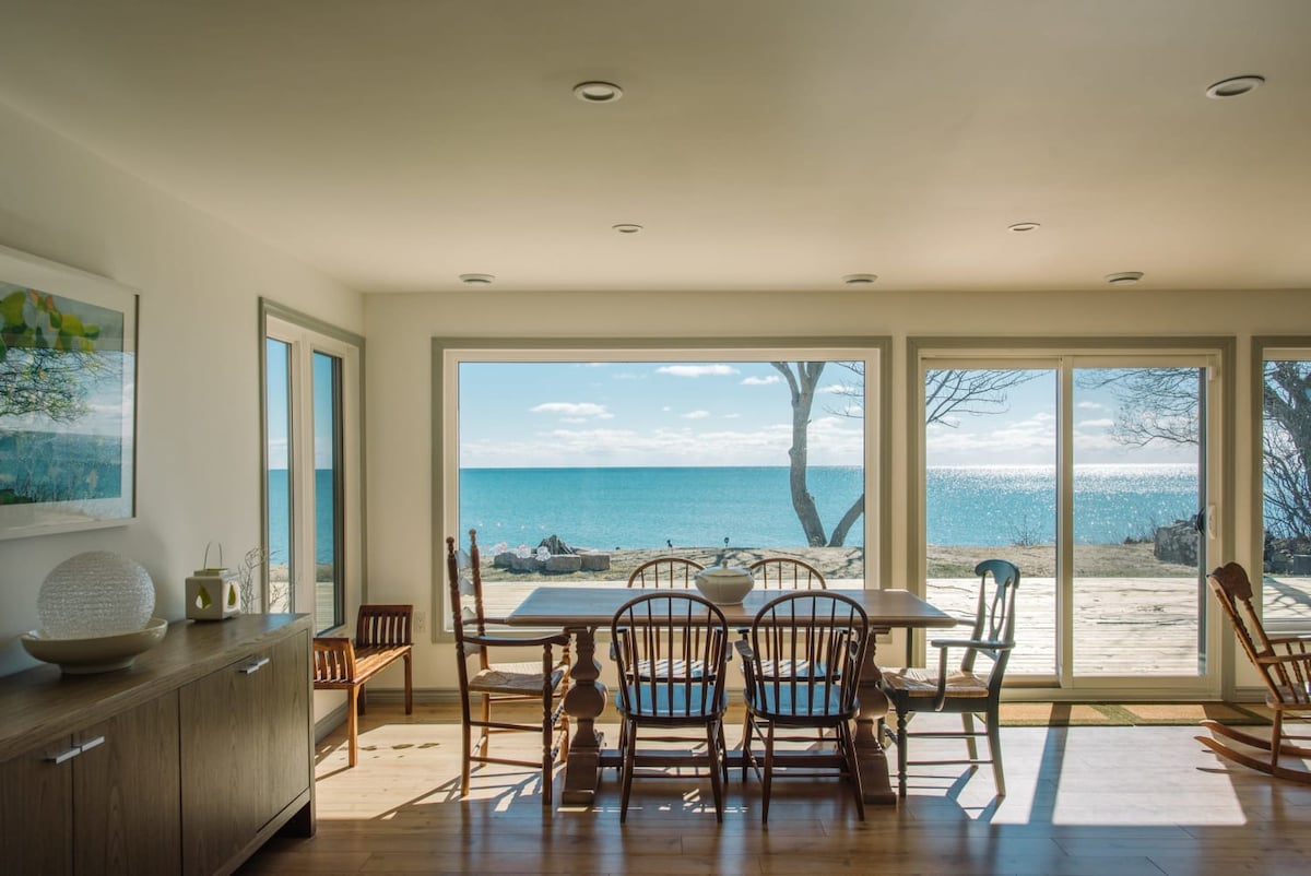 Fitzroy Lakehouse is a private waterfront bungalow on Lake Ontario with a year-round hot tub and direct water access. Enjoy lake views from the main living area and primary bedroom, plus a 200-foot private rock beach with seasonal stairs from Victoria Day to Thanksgiving. Minutes from Prince Edward County wineries and Consecon, with fast Starlink internet, dedicated workspace, firepit, kids play structure, and EV charger. Ideal for families, couples, and remote workers seeking privacy and views.