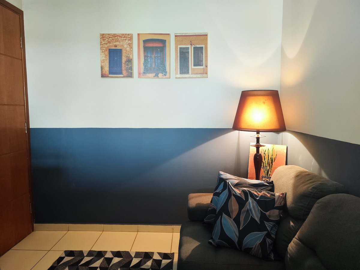 Estarás cómodo en este lugar que tiene una gran sala de estar, cocina con todo lo necesario para preparar tus comidas, amplia habitación con armario, cama doble y cama individual, baño agradable y garaje individual con puerta. También tendrás wifi, televisión, ropa de cama y otros servicios. ¡El sitio tiene una cámara en el área exterior (balcón) para garantizar la seguridad total de tu alojamiento! ¡Te damos la bienvenida!