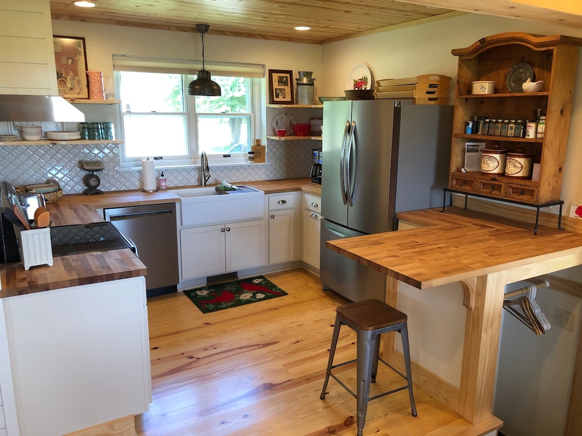 A two-bedroom apartment above Getaway Motor Cafe in historic downtown Carver, MN. Built in 1871, carefully restored, and designed with a Nordic Modern warmth that makes you want to stay a little longer. Jøtul fireplace, gourmet kitchen, private balcony over the creek, and a cafe downstairs for morning coffee and evening cocktails. Sleeps 4. Small-town charm, miles of trails. Come rest.