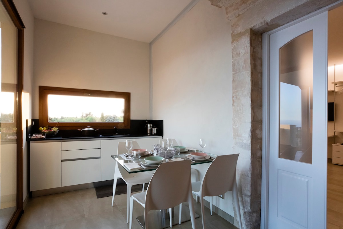 El apartamento "La flauta mágica", antiguamente utilizado como establo, está situado en la dependencia de una granja del siglo XIX, rodeado de un jardín con almendros, olivos y naranjos. La Flauta Mágica ofrece un dormitorio doble y un salón-cocina con una cama individual. Dispone de cocina totalmente equipada, televisión, conexión WiFi gratuita y aparcamiento privado.