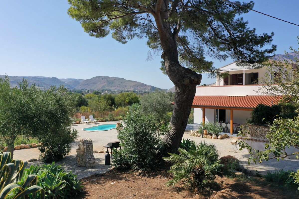Soggiornerete al piano terra della mia villa a 3 minuti a piedi dal mare, composta da due appartamenti separati. *Non condividerete tutti gli spazi esterni con gli altri ospiti*. L'appartamento gode di un ampio spazio esterno con tavolo da pranzo, divanetti e sdraio, il parcheggio è privato. La villa si trova in una delle aree più suggestive di Scopello, a 200 metri dalla bellissima spiaggia di Cala Mazzo di Sciacca, ed è circondata da un ampio giardino alberato e una suggestiva vista mare