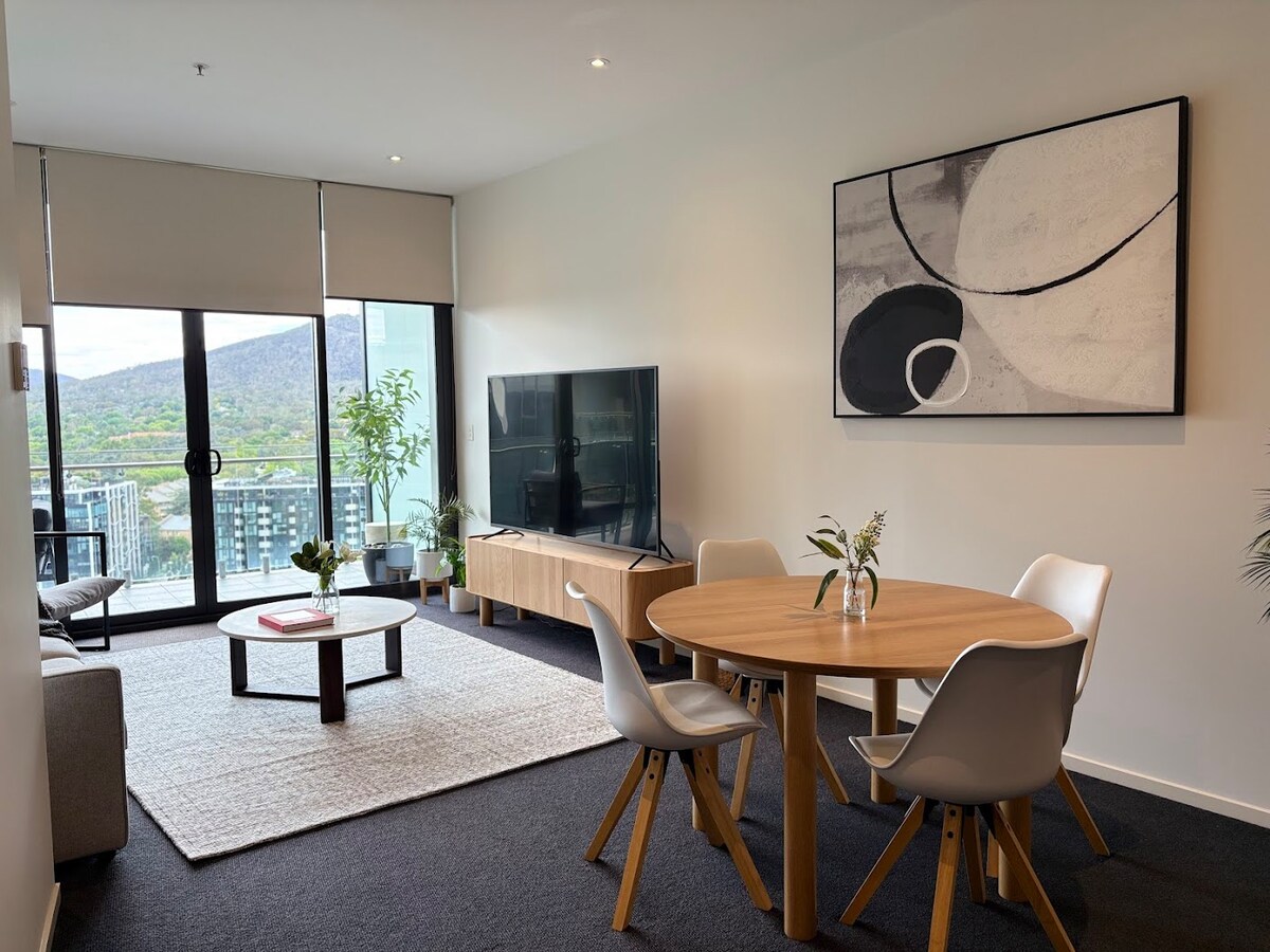 *Reserva hoy para descubrir la belleza de este encantador apartamento :) Lo más destacado: - Aparcamiento seguro complementario. - Zona de barbacoa en la azotea con vistas a la montaña de 180° (servicios del edificio). - A 2 minutos a pie del centro de Canberra. - A 6 minutos a pie de Lonsdale St (lugar de buenos restaurantes y pubs). - A 6 minutos en coche/17 minutos a pie de la ANU. - A 8 minutos en coche del aeropuerto de Canberra. - A 9 minutos en coche del mirador del monte Ainslie. Nuestro elegante apartamento tiene cortinas opacas y colchones de calidad para que disfrutes de una estancia cómoda.