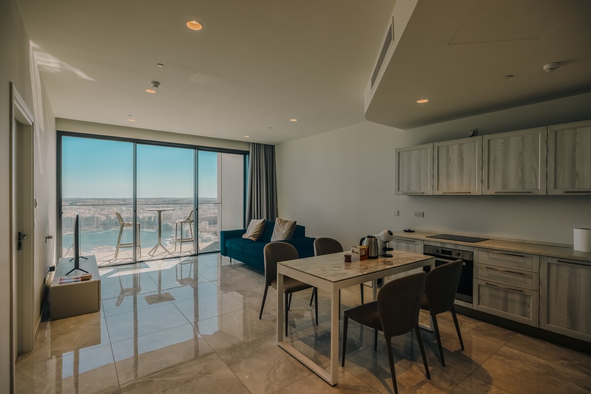 Welcome to your luxury sky-high escape in Malta’s architectural masterpiece. Perched on the 27th floor, this ultra-modern apartment offers unbeatable panoramic views of the Mediterranean, from Portomaso Marina to Spinola Bay and Balluta Bay, creating an unforgettable backdrop for your stay.  Whether you’re here for romance, business, or a Christmas getaway, this home combines stylish design, comfort, and a prime location in vibrant St. Julian’s, one of Malta’s most desirable neighborhood.