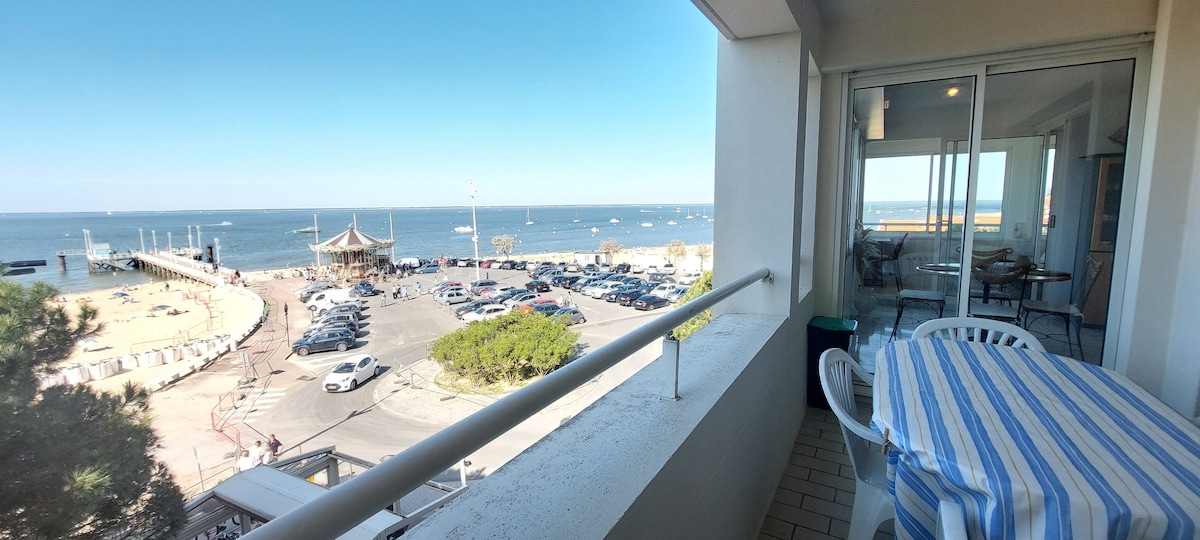 ¡Bonito apartamento con vistas al mar en primera línea! Consta de 1 dormitorio + balcón + 1 plaza de aparcamiento privado + wifi de fibra. Apartamento con doble orientación situado en la 1.ª planta con ascensor. Gran sala de estar y apartamento con 5 camas. Acceso a la estación a pie. Internet por fibra = teletrabajo posible. Residencia frente al mar situada cerca del paseo marítimo entre el muelle Thiers y el de Eyrac, en el centro de Arcachon: En las inmediaciones de restaurantes.