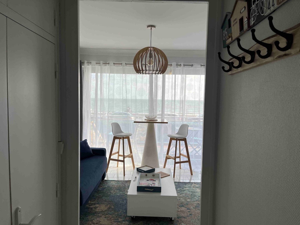 Appart. cosy 25m2 accueillant 4 pers. entièrement refait à neuf, décoré avec soin, très bien équipé (y compris fibre internet wifi très haut débit) .Dans petite résidence au calme avec parking privé, vous êtes à 50m de la plage et du remblai. A proximité de toutes les commodités et les animations vous passerez un séjour agréable, reposant et divertissant. Bien situé vous pourrez découvrir l'ensemble de la côte de jade, de la côte d'amour, le parc régional de Brière et la région Nantaise.