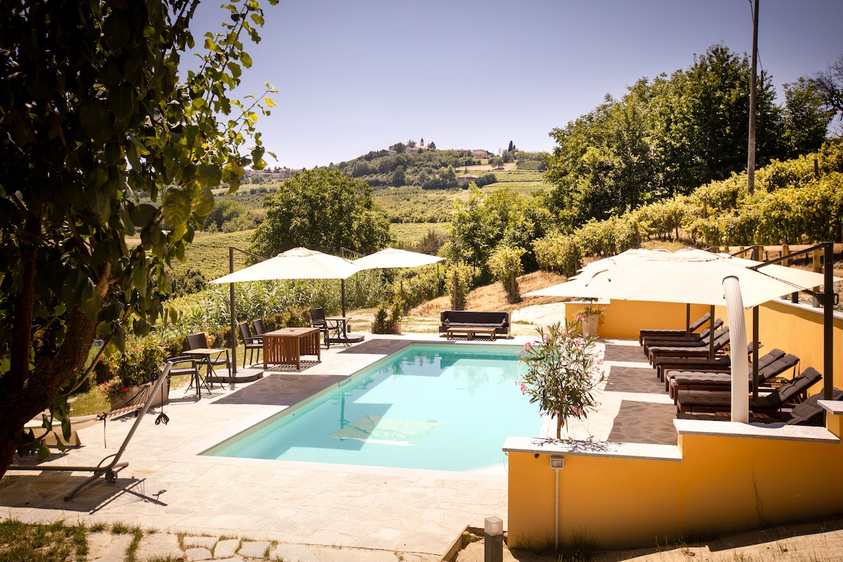[Alba-Asti-Langhe] Villa con viñedo, piscina y patio