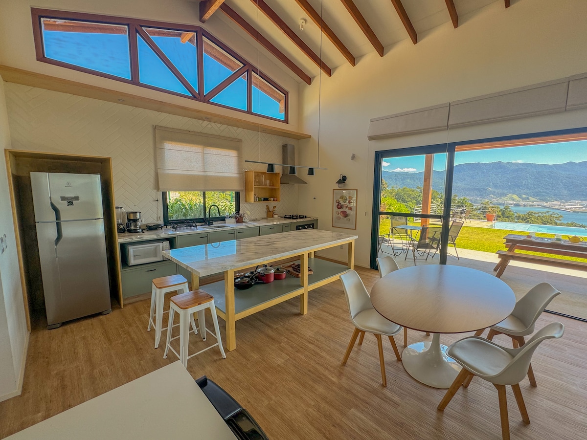 Casa rústica e aconchegante com vista deslumbrante. Acordar e olhar o mar sem levantar a cabeça do travesseiro é impagável. E sem borrachudos! Tem muitos na ilha, poucos por aqui. Ideal para 2 pessoas é confortável e prática. Banheiro amplo, cozinha equipada, sala com sofás de tecido e o deck completam o aconchego. É perfeita para relaxar apreciando o cenário em qualquer canto da casa. Com bom wi-fi é melhor ainda para trabalhar. Não é isolada, mas é exclusiva para quem nela estiver.