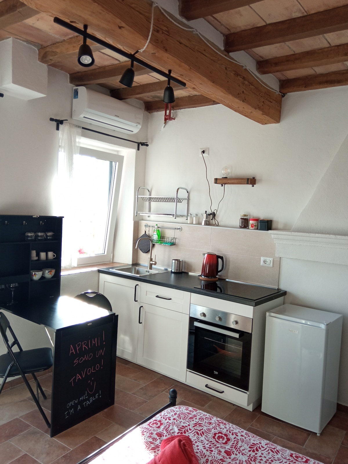 Cascinetta a pocos pasos del centro de la ciudad, con estacionamiento gratuito fuera de la propiedad. Planta baja: jardín, porche, cocina equipada con salón/salón/salón/área de trabajo muy grande,medio baño. Primer piso: habitación de pensamiento, 1 dormitorio doble y un baño grande con bañera de hidromasaje y ducha doble + 1 dormitorio doble, ambos con cuchillas de techo. Parquet y piso de piedra, muebles muy bien cuidados con elementos contrastantes entre las obras vintage y modernas de los artistas propietarios.