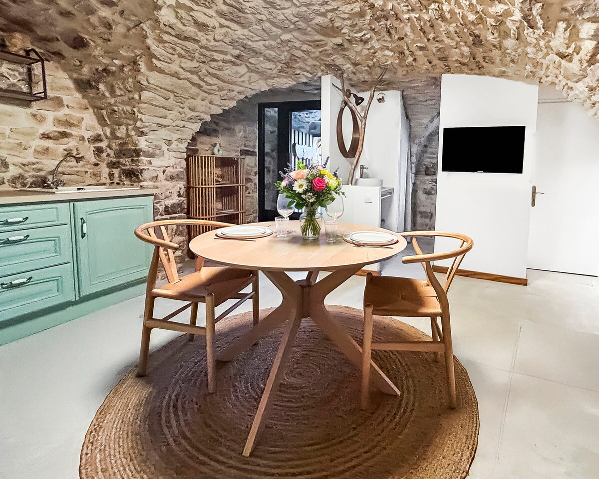 Situada a menos de 10 minutos de Uzès, en esta casa de piedra, decorada con buen gusto, pasará una estancia cómoda en un entorno tranquilo y agradable. Ideal para una estancia en pareja, disfrutará de una terraza privada con barbacoa, acceso a la piscina climatizada compartida con los propietarios y un aparcamiento privado y cubierto. La casa ofrece 1 dormitorio, 1 baño con ducha y bañera, una gran sala de estar con chimenea, una cocina equipada y un espacio dedicado al teletrabajo.