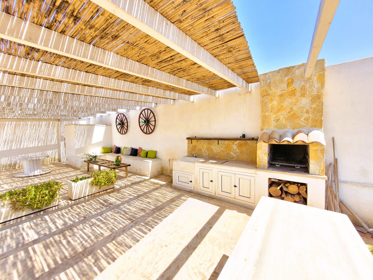 Esta villa ofrece un panorama impresionante. La casa se encuentra en un lugar excepcionalmente pintoresco en una pequeña meseta a un kilómetro del mar en Marina di Andrano. El alojamiento fue decorado con cuidadosa atención a los detalles y es muy limpio y ordenado. Bañeras de piedra, la cama antigua restaurada, cestas de paja tejidas, evocan la vida rural y rústica y la artesanía de la región de Salento. La vieja campana de hierro forjado para llamar a la familia a la mesa también es una característica particularmente encantadora.