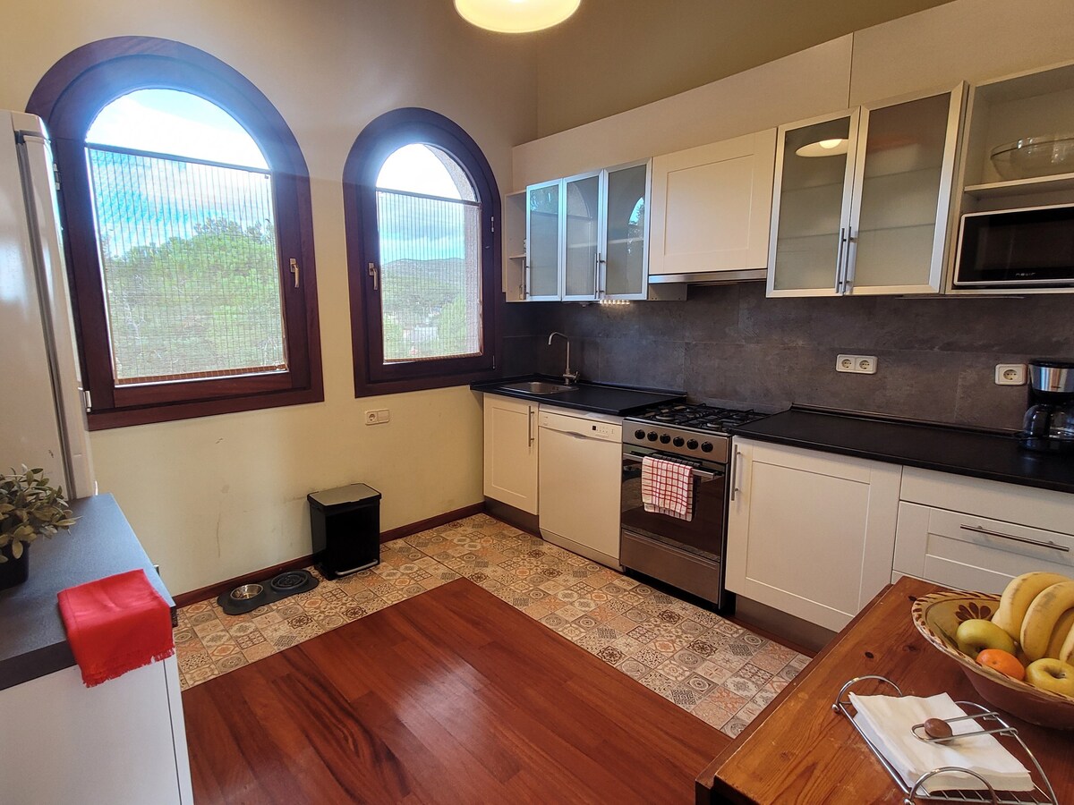 El aire puro entrando por sus ventanales, sus vistas de escándalo, sus atardeceres junto a la piscina, su rústica decoración cuidada hasta el más mínimo detalle... Todo esto y mucho más en un alojamiento excepcional con piscina y barbacoa para viajeros en busca de paz. A 28km de Barcelona. Situada en una tranquila zona residencial de Vallirana, en el Penedés, cuenta con la ubicación ideal para disfrutar de la naturaleza en su estado más auténtico, realizar rutas senderistas, practicar ciclismo de montaña o acampar al aire libre. Recomendamos alquilar coches. Importante: al tratarse de espacios muy amplios, el wifi sólo llega a algunas partes de la casa. Situada en una tranquila zona residencial de Vallirana, en el Penedés, cuenta con la ubicación ideal para disfrutar de la naturaleza en su estado más auténtico, realizar rutas senderistas, practicar ciclismo de montaña o acampar al aire libre. En tan sólo 30 minutos puedes llegar a las playas de Sitges, a Barcelona o al aeropuerto del Prat-Barcelona.