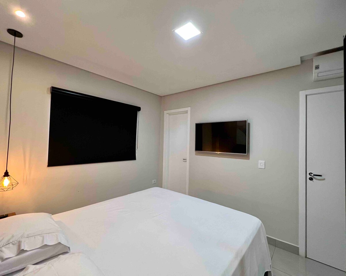 A pocos pasos del centro comercial Jl. Tu familia estará cerca de todo (mercados, farmacias, restaurante, bares, estaciones de servicio, gimnasio Smart Fit) en este lugar bien ubicado a poco más de 1 km del centro de la ciudad. Apartamento con 1 lugar de estacionamiento en el garaje Hermoso y acogedor lugar con una ducha relajante Seguro, con alarma, cámaras en el edificio y ascensor y con una estación de policía enfrente Aire acondicionado en los alrededores. Proporcionamos ropa de cama, toallas de baño, jabón, café en polvo, azúcar, té y chocolate.
