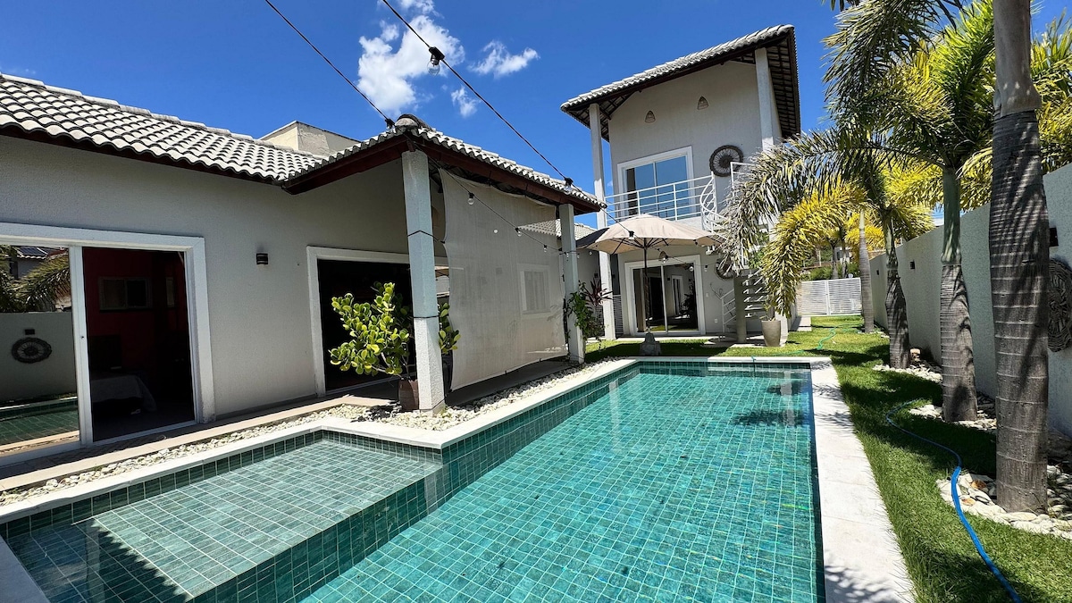 Casa con 6 suites, 1 dormitorio adicional, comedor, sala de estar, cocina equipada y área grande con barbacoa. Tenemos un gran jardín con espacio para acomodar las cometas. Con 6 bedroons, cocina, área de barbacoa, piscina y gran lugar para kitesurf. Voltagem: 220V