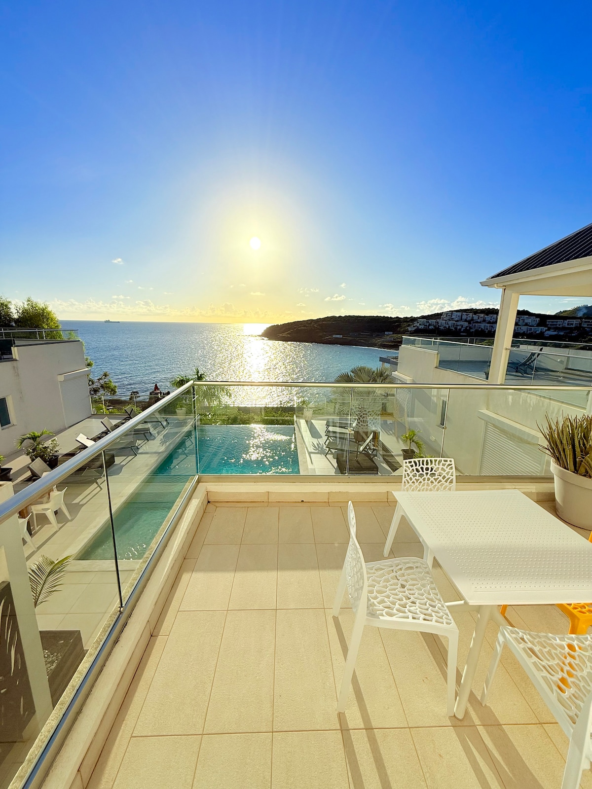 Welcome to Villa Solandra, a western facing ocean front luxury 3BR/3BA home with a private pool in Indigo Bay. Enjoy romantic & epic sunsets, this cliffside escape blends indoor-outdoor living with sweeping Sea & Bay views, two large oceanfront balconies, and designer interiors. Enjoy a chef inspired kitchen, luxury king suites w/ ensuite baths, private garden just minutes from beaches, dining, Simpson Bay and Maho’s iconic plane spotting. Perfect for families, friends, or romantic getaways.