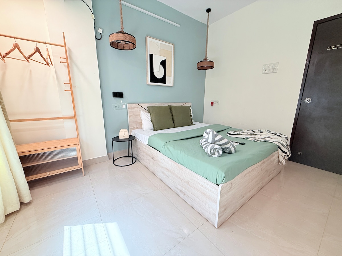 Disfruta de tu estancia en este apartamento de 2 dormitorios en una zona privilegiada. Cada dormitorio tiene aire acondicionado, camas cómodas y armarios. La amplia sala de estar incluye un sofá, una mesa de comedor y un balcón. La cocina ofrece una nevera, lavadora, estufa de gas y utensilios básicos perfectos para estancias cortas o largas. Hay 2 baños: uno adjunto al dormitorio principal con un inodoro occidental y otro cerca de la sala de estar con un inodoro de estilo indio. ⚠️ Aire acondicionado disponible solo en los dormitorios; el aire acondicionado de la sala de estar es de pago.
