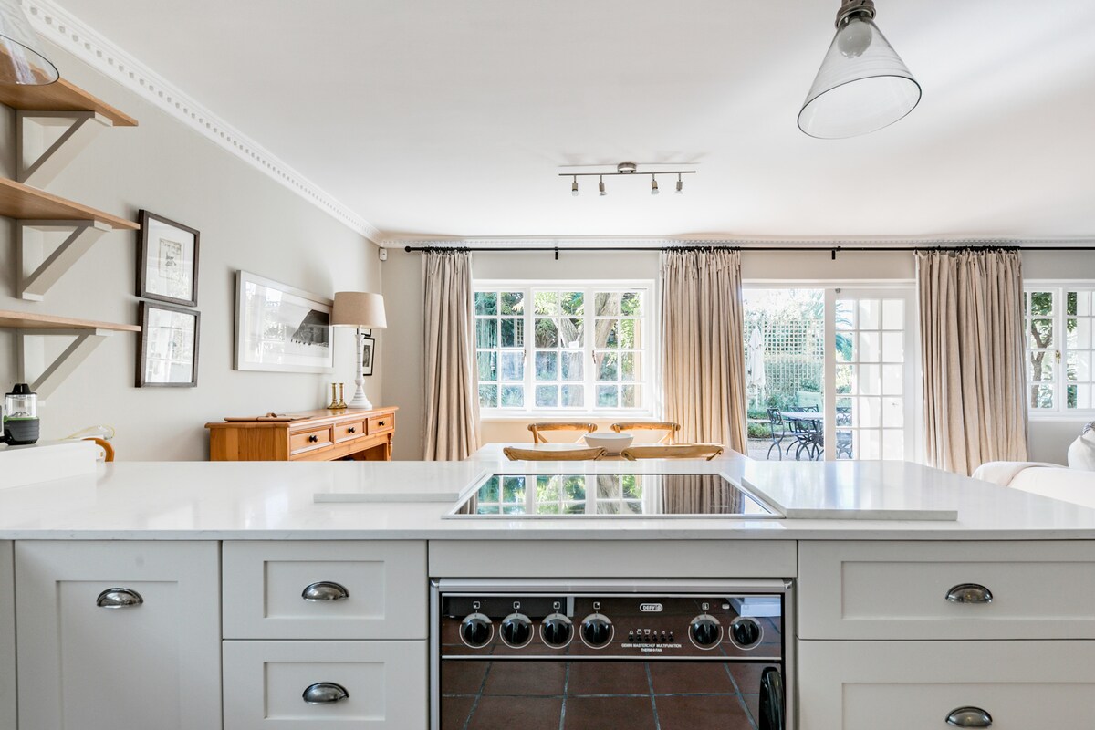 Déjate mimar por la elegancia de antaño en la mansión de Mount Pleasant, que data del siglo XIX. Cena al aire libre junto a tu piscina privada en esta histórica propiedad ubicada bajo la montaña de la Mesa. Relájate con una copa de vino del Cabo en la elegante y romántica suite de invitados con su propio jardín sembrado de vides, o acurrúcate en un sillón junto a la gran chimenea de piedra. La espaciosa y amplia suite de invitados de planta abierta es ideal para parejas y familias jóvenes. Situado en el centro de la frondosa Newlands, a pocos pasos de los famosos estadios deportivos, UCT y SACS. La casa ha sido recientemente renovada y es una casa familiar, y la propiedad de Mount Pleasant es una parte interesante de la historia de Ciudad del Cabo, que data del siglo XVIII. La suite con entrada independiente es ideal para una pareja o familia y consta de: - Un gran dormitorio-salón de planta abierta (3-4 plazas). - Una cocina completa. - Baño con bañera, ducha y tocador doble. - Una piscina privada de entrenamiento. - Jardín privado con vistas a la montaña de la Mesa y al Pico del Diablo. En verano, es imprescindible descansar junto a la piscina soleada, cenar al aire libre y disfrutradicional «braai» sudafricano (barbacoa) y, en invierno, el fuego crepitante, la cocina completa y la televisión proporcionan un refugio cálido. El dormitorio-salón es de planta abierta con cocina y baño separados. Cama tamaño king, un sofá cama individual y una cama individual adicional instalada en la suite para el cuarto huésped si es necesario. TV por cable y wifi están incluidos. Se ofrecen botellas de vino y bebidas, servicios de lavandería y limpieza. Otros extras que pueden estar disponibles son: uso del comedor baronial para reuniones (con capacidad para 18 personas) u ocasiones especiales (solo durante el día). Nota: la piscina NO está vallada y está inmediatamente al lado de la suite, así que ten especial cuidado (por lo tanto, el espacio no está recomendado para niños que no sepan nadar). Jardín y piscina privados Aparcamiento fuera de la calle para 1 coche. Uso del gran comedor bajo petición. Los huéspedes pueden disfrutar de total privacidad, pero la familia y el personal doméstico suelen estar en casa para darte la bienvenida y estarán encantados de responder preguntas y ayudarte por teléfono o mensaje de texto. Nuestros amables perros, Boris, Frankie, Josh y Pixel, siempre te darán una cálida bienvenida (pero tu jardín y ala son privados, por lo que los perros no te molestarán). Newlands es uno de los suburbios frondosos originales de Ciudad del Cabo que limita con la Universidad y la residencia del Presidente del Estado. Encantador y protegido de los vientos de verano, y a poca distancia a pie de cafeterías, restaurantes y tiendas. Newlands es perfectamente céntrico para la mayoría de las excursiones más populares de Ciudad del Cabo. La montaña de la Mesa y el teleférico, el paseo marítimo V&A, las playas, las granjas vinícolas y el centro de la ciudad se encuentran a 10-25 minutos en coche y hay Ubers, etc. disponibles. El barrio periférico de Newlands en sí tiene muchas atracciones, pero para disfrutar de la oferta completa de Ciudad del Cabo te recomendamos alquilar un coche o tomar un taxi (Uber o taxi por teléfono). Los guías o conductores privados también te recogerán directamente en las instalaciones. En el aeropuerto hay disponibles traslados/lanzaderas/taxis o se pueden reservar a través de una empresa de traslados. ALBERCA Importante: la piscina no está protegida con una red o valla y está inmediatamente al lado de la suite, así que ten cuidado y NO recomendamos la suite para bebés/niños que no sepan nadar. MASCOTAS Podemos alojar mascotas bajo petición, pero ten en cuenta que hay perros residentes. EXTRAS Los extras, como el vino, se pueden pagar en efectivo o a través de la aplicación SnapScan. REUNIONES Y FUNCIONES El comedor baronial se puede reservar para reuniones especiales y funciones diurnas (tarifas/disponibilidad bajo petición). Es una habitación bonita y tiene capacidad para 14-18 personas. SESIONES FOTOGRÁFICAS Y UBICACIÓN La casa solariega Mount Pleasant y los terrenos pueden estar disponibles para sesiones de fotografía/cine profesionales. Esto tendría que ser por acuerdo especial directamente con los propietarios o sus agentes. Las tarifas varían según las características de la sesión. (Nota: el uso del espacio para huéspedes para sesiones comerciales tendría un coste adicional y no está incluido en la tarifa de alojamiento).