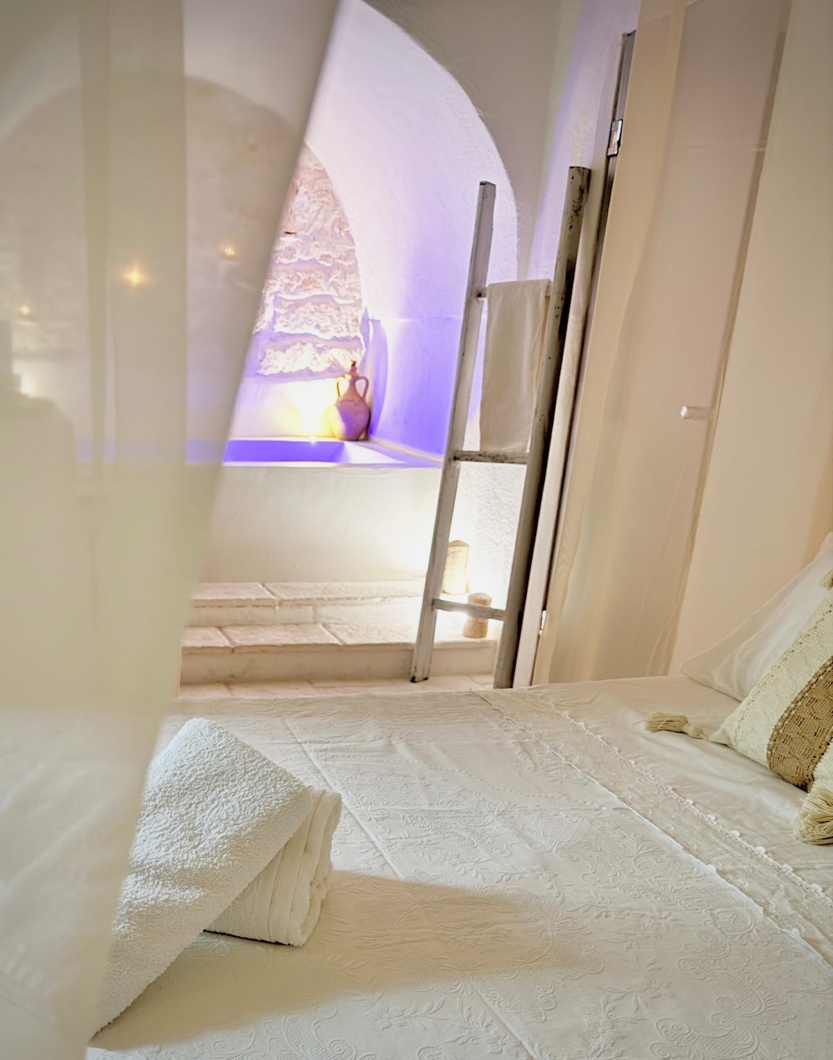 El Trullo Apulia es una propiedad exclusiva, hecha recuperando una antigua casa con cúpula histórica original (llamada "Trullo Saraceno"), enriquecida por piscina, jacuzzi y sala de vapor para uso privado, en una ubicación pintoresca, a solo 2 km de Ostuni y a 10 km de las hermosas playas de Puglia. Puede acomodar hasta 8 personas. Nota: la tarifa de reservación no incluye el consumo de electricidad (0,50 €/kWh), gas (5 €/m3) y el impuesto turístico (1 €/día por cada persona durante los primeros 5 días) que se calculará y pagará al final de tu estadía. Estructura exclusiva con piscina, jacuzzi, baño turco, capacidad para 8 personas, ubicación panorámica, a 2 km de Ostuni y a 10 km del mar. Nota: Los costos de electricidad, gas e impuestos de ocupación no están incluidos en la tarifa de alquiler y deben calcularse y pagarse al final de la estadía. La versión italiana Il Trullo Saraceno Apulia es una estructura exclusiva con piscina privada, en una posición panorámica y montañosa, a solo 2 km de Ostuni y a 10 km de las hermosas playas de Apulia. Cuenta con 2/3 dormitorios dobles, 4 baños (uno con sala de vapor, bañera de hidromasaje y ducha emocional), 2 áreas de estar (con 2 sofás cama dobles (con 2 sofás cama dobles), 2 cocinas y puede alojar cómodamente hasta 8 camas. Ambiente único que combina el inconfundible estilo mediterráneo con las más modernas comodidades, para una estancia exclusiva y original, en nombre de la relajación, la privacidad y el bienestar natural. La estructura consta de 2 unidades (Saracen trullo con 3 conos + lamia) totalmente independientes, pero comunicándose entre sí, separadas por una puerta con cerradura. Cada unidad incluye un comedor con chimenea, TV vía satélite LED y sofá cama doble, una pequeña cocina completa con electrodomésticos (nevera-congelador, horno eléctrico, lavavajillas, lavadora, electrodomésticos pequeños)y un dormitorio con baño privado, con ducha emocional para cromoterapia. Ideal para 2 familias de amigos que, sin prejuicios de privacidad, pueden disfrutar de momentos comunes de relajación y diversión, también se puede utilizar como la única unidad de estar, utilizando una de las dos áreas de estar como un tercer dormitorio doble. Todas las habitaciones de la casa tienen aire acondicionado y Internet wifi. Los huéspedes tienen un estacionamiento privado disponible para que la usen los alojamientos. Toda la estructura tiene una capacidad máxima de alojamiento de 8 camas, proporcionando a sus huéspedes 4 baños, de los cuales 2 interiores completos, una zona de bienestar con sala de vapor, aromaterapia, gran bañera de hidromasaje (con vistas a una sugerente pared de roca), ducha emocional con cromoterapia y 1 baño al aire libre (inodoro+lavabo) con ducha. La exclusiva piscina infinita de agua salada con jacuzzi está inmersa en la vegetación del matorral mediterráneo. Este oasis de privacidad y relajación cuenta con todo lo que necesitas, incluido un área de solárium, ducha al aire libre y baño. La profundidad del agua de la piscina cumple con los requisitos legales para garantizar la máxima seguridad incluso de los más pequeños. Hay muchos espacios amueblados al aire libre y entornos minimalistas que permiten a los huéspedes almorzar o cenar en una gran terraza panorámica a la sombra de un cenador de paja o disfrutar, tan pronto como te despiertas, en una zona equipada justo enfrente de la puerta francesa de tu dormitorio, respirando los aromas de los campos, respirando los aromas de los campos, en la intimidad de la luz de la madrugada. Al atardecer, la singularidad del trullo y el jardín circundante se ve aún más mejorada por la iluminación nocturna, que te dará nuevas emociones y un encanto inolvidable, regocijado por los inconfundibles sabores de la comida a la parrilla en la barbacoa. El complejo residencial es el resultado de una renovación muy reciente de edificios con valor histórico (el Trullo Saraceno con una cúpula blanca característica es incluso más antigua que el cono trullo), en la que la inteligente recuperación de materiales, técnicas y canones típicos de la arquitectura y la historia de Apulia, ha permitido una restauración de interiores y exteriores que mantuvo una línea de lugares muy evocadora y respetuosa, incluso en los muebles con luz y colores naturales, estudiados con la máxima atención a los detalles y consistentes en piezas únicas y originales. El encanto de la ubicación no conoce ninguna comparación: la construcción tiene vistas a un jardín con terrazas típicas de piedra seca, más allá de las cuales se abre, hasta donde alcanza la vista, a una superficie de unos 6000 metros cuadrados de exclusiva para la casa, un valle de magníficos olivos centenarios en la tierra roja. Un bosque de cítricos, un huerto, grandes áreas de matorrales mediterráneos entre las que muchas plantas y hierbas encuentran espacio, con imágenes, en un disturbio de colores y aromas de naturaleza virgen que iluminan los ojos e iluminan la mente. Las frutas y verduras, totalmente ecológicas, están a disposición de los huéspedes. NOTA: Trullo Apulia promueve el uso sostenible de la electricidad y el agua (incluidos los paneles fotovoltaicos y para calentar el agua sanitaria) y nos gustaría que nuestros huéspedes hicieran lo mismo. Por esta razón, no incluimos el consumo de electricidad en una tarifa fija en los costos de alquiler, pero se contará de acuerdo con el consumo real que verificaremos juntos, confiando en su uso responsable (para obtener más información, consulta la sección "Otros aspectos a tener en cuenta"). El Trullo Saraceno Apulia es una propiedad exclusiva con piscina para uso privado, en una pintoresca ubicación en la ladera de una colina, a solo 2 km de Ostuni y a 10 km de las hermosas playas de Apulia. Tiene 2/3 habitaciones dobles, 4 baños (uno con baño de vapor, bañera de hidromasaje y ducha emocional), 2 salas d