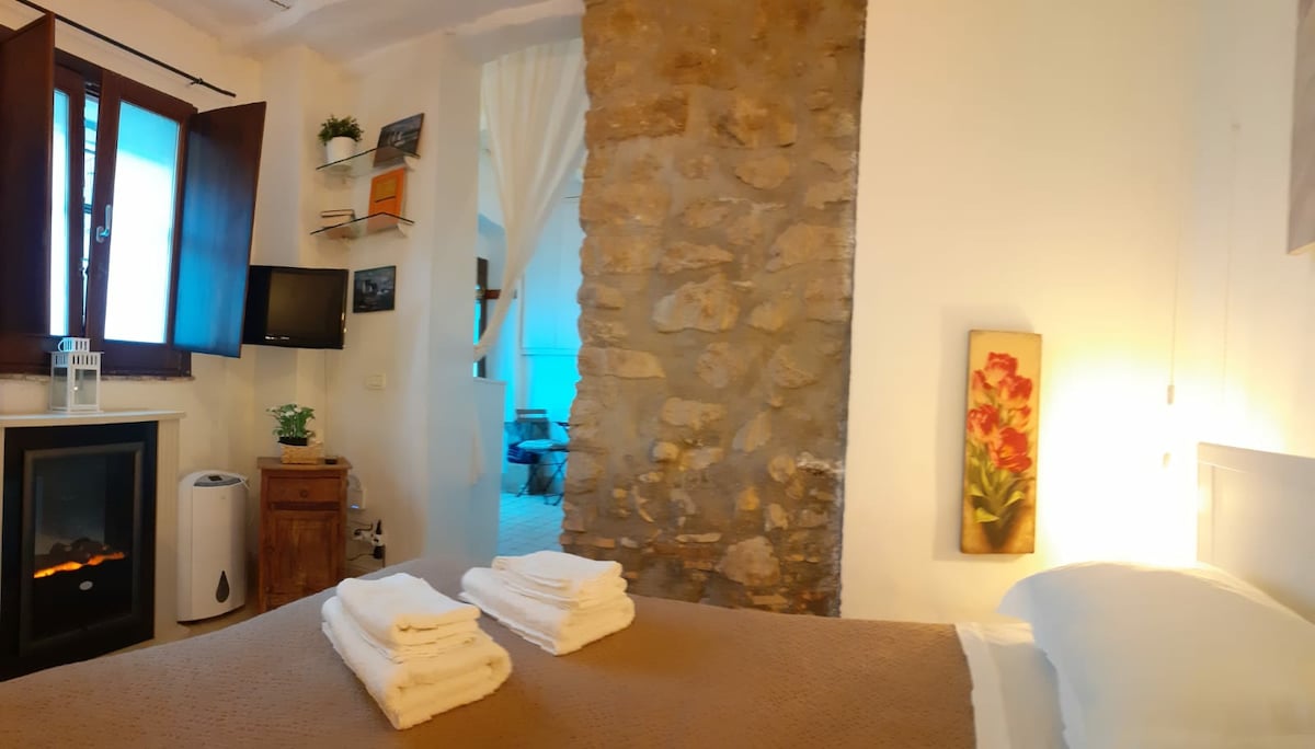 CASETTA NEL BORGO centro del borgo medievale VI Secolo a.c. accogliente casetta del 1300 a pochi passi dalla torre antica e dal Belvedere Restaurato mantenendo la casa originaria in legno e travi a vista,muri di pietra viva che caratterizzano i vari ambienti per un’esperienza magica in un’atmosfera incantevole,saloncino con cucina attrezzata,bagno in roccia,camera da letto e caminetto,avrete un'ottima linea internet smar tv,kit bagno e teli. Dal parcheggio gratuito si entra a piedi nel borgo.