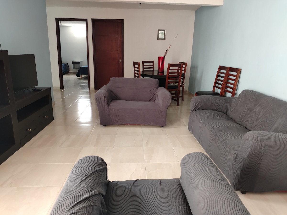 Es un departamento amueblado, con sala, comedor, cocina equipada, dos recamáras y un baño completo, con todos los servicios de hotel. Ubicado cerca de la terminal de autobuses y en zona céntrica de la ciudad. Nos encontramos a 30 min de Querétaro y a 30 min de San Miguel de Allende