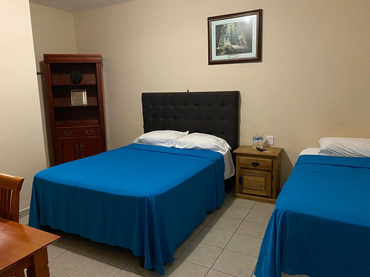 Un lugar muy tranquilo, la zona es de las mas seguras de la ciudad, oxxo a 200 mts, a 5 minutos del centro histórico, todo te queda cerca, vigilancia las 24 horas, seguridad de videovigilancia, lugar super comodo, sientete como en casa y ven a disfrutar con tu familia o por trabajo, nuestra prioridad son nuestros huéspedes, lugar cómodo y siempre limpio para usted, conozca nuestro servicio, no se arrepentirá. Cerca de zona arbolada por si usted gusta de salir a caminar y relajarse.