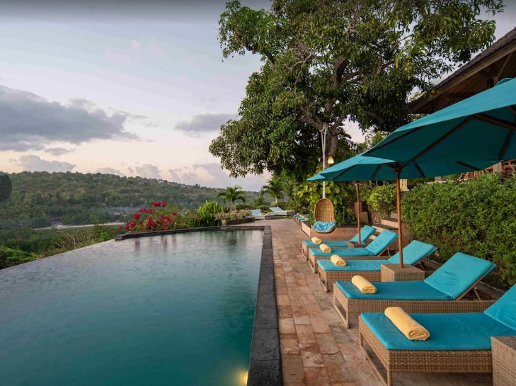 Ubicada sobre la hermosa selva y el bosque en medio de Penida, Katon Hills es una propiedad única que garantiza la relajación con un poco de lujo.  Este es 1 de los 3 dormitorios, todos con aire acondicionado y duchas de efecto lluvia en un entorno moderno y limpio con toques tradicionales balineses. Es el mejor lugar para unas vacaciones románticas o simplemente para «escapar» de la locura de Bali y disfrutar de la piscina flotante, una piscina infinita que se alza sobre el bosque. Desayuno incluido y cena disponible.