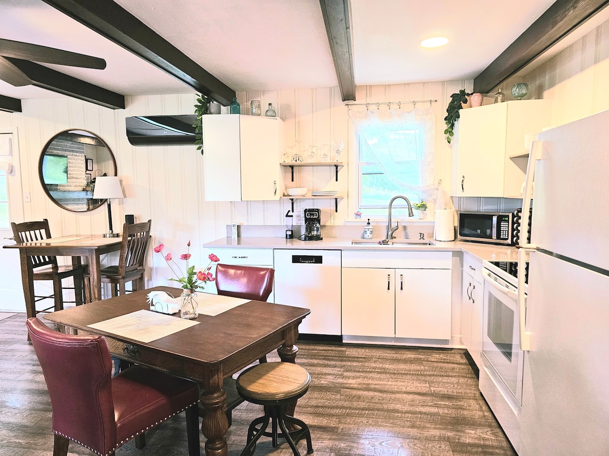 Escápate a la tranquilidad en este refugio de un dormitorio bellamente renovado, enclavado en un entorno rural tranquilo. Disponible para alquileres diarios, semanales o mensuales, combina la comodidad moderna con el encanto del campo. Relájate en el columpio cubierto del porche. Aire acondicionado central y calefacción. Disfruta de una nueva cocina con lavavajillas y relájate en la amplia sala de estar con conexión WiFi gratuita y TV por cable. Disfruta de la chimenea, el árbol a la sombra y la ubicación conveniente cerca de mercados, parques y autopistas. Perfecto para una escapada pacífica. ¡Reserva hoy mismo!