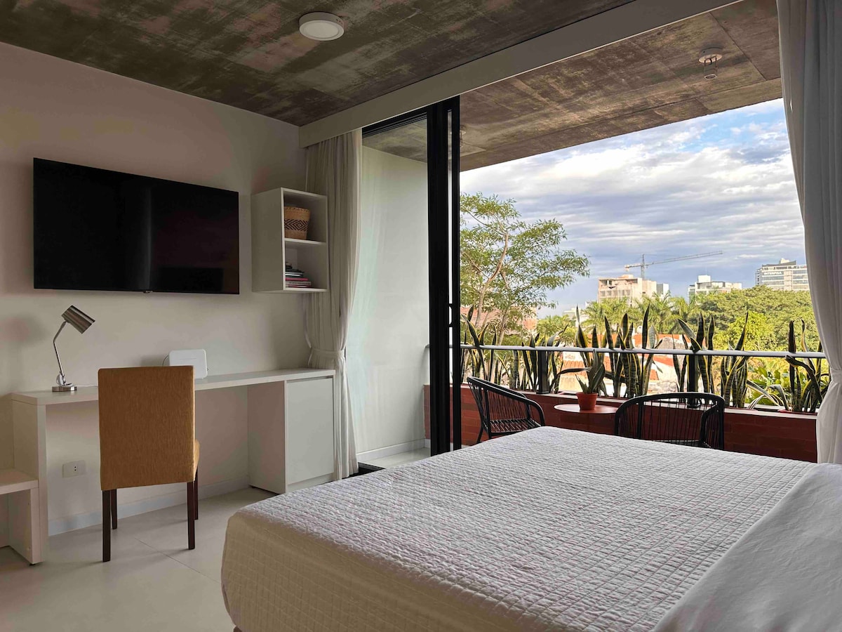 Disfrutá una estadía cómoda y sofisticada en uno de nuestros cinco monoambientes premium, ubicados en el mismo edificio y diseñados bajo un estándar uniforme de calidad, confort y estilo. Ubicado en el corazón de una de las zonas más exclusivas de la ciudad, el entorno de Shopping del Sol es el epicentro de la vida urbana. Supermercados, tiendas de conveniencia y farmacias se encuentran en la zona, facilitando el acceso rápido a todo lo que puedas necesitar durante tu estadía.