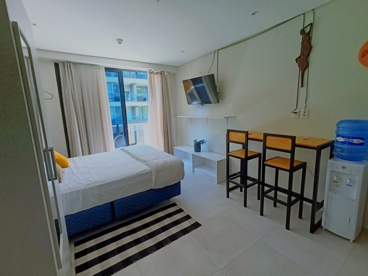 Estudio moderno cerca de centros comerciales con piscina, gimnasio y barbacoa