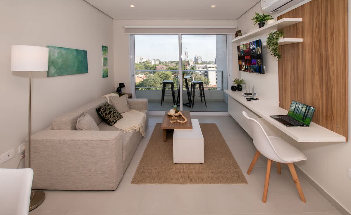 Hermoso y acogedor apartamento listo para que disfrutes de tu estancia en Asunción durante unos días o unos meses. Todo lo que necesitas está incluido. A pocos pasos de Shopping Villa Morra/Mariscal, supermercado y muchos restaurantes. Uso de piscina en la azotea, barbacoa y gimnasio. Amplio balcón con unas vistas increíbles. Wifi, ropa de cama, cocina y todo lo necesario para que te sientas como en casa.