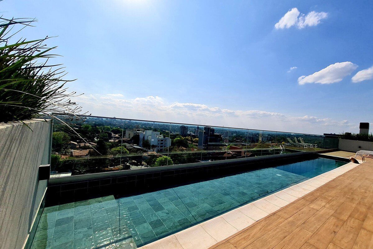 Disfruta de una experiencia con estilo en este alojamiento en la mejor zona de Asunción, a pasos de los shopping, lugares gastronómicos ; este moderno departamento cuenta con 3 dormitorios climatizados, sala comedor con TV climatizado, cocina totalmente equipada, con parrilla para barbacoa dentro del departamento , además piscina, gimnasio, zona de barbacoa en la azotea , estacionamiento y seguridad 24 horas.