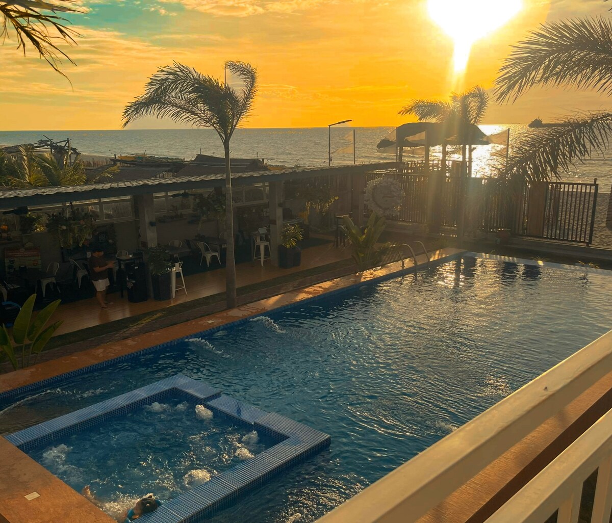 Este anuncio es para una habitación contenedor con aire acondicionado para 2-3 personas. Con baño en suite. Wifi disponible. Ubicación frente a la playa / lugar de surf. Estacionamiento y piscina disponibles. Lee los pies de foto para gestionar las expectativas. ESTRICTAMENTE PROHIBIDO FUMAR. NO SE PERMITEN HUÉSPEDES DE FUERA. USO EXCLUSIVO DE LA ESTUFA DE GAS (con cargo), TRAE TUS PROPIOS UTENSILIOS DE COCINA. Navegación: desde el puente de Aguang (si vienes de Reserva) gira a la izquierda en la nueva carretera de acceso a la playa. Sigue las señales hacia Balituk.