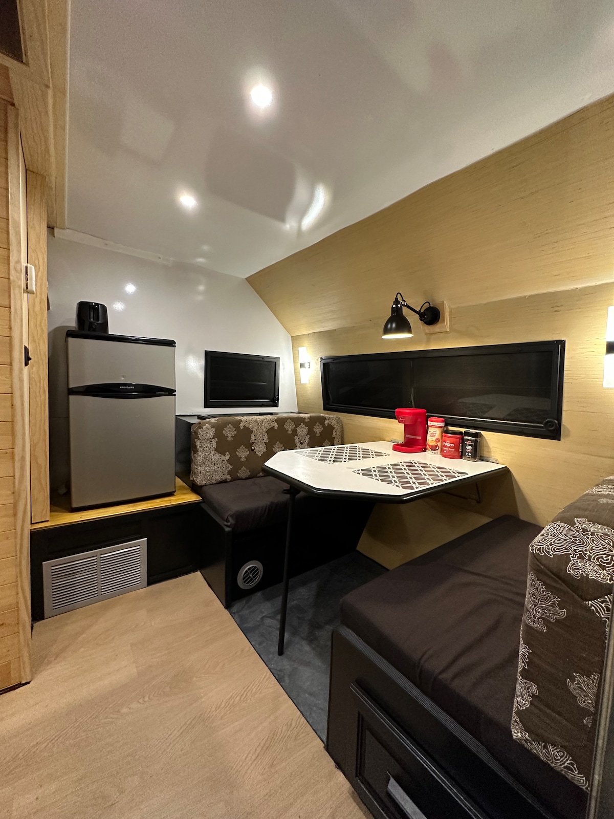 Te damos la bienvenida a The Nook. Ubicado en un pequeño parque de casas rodantes de temporada con vista al agua y acceso. Ubicado junto al puente PEC Skyway, ofrece un acceso rápido y fácil al hermoso condado del vino. Cuenta con una relajante bañera de hidromasaje al aire libre con ducha de efecto lluvia. Disfruta jugando juegos de césped o un paseo en canoa por la hermosa bahía de Quinte. Acogedor junto a la fogata por la noche con una copa de vino en las sillas Adirondack. Ideal para una escapada romántica de acampada. ¡Ven y descubre en qué consiste la vida en una autocaravana!