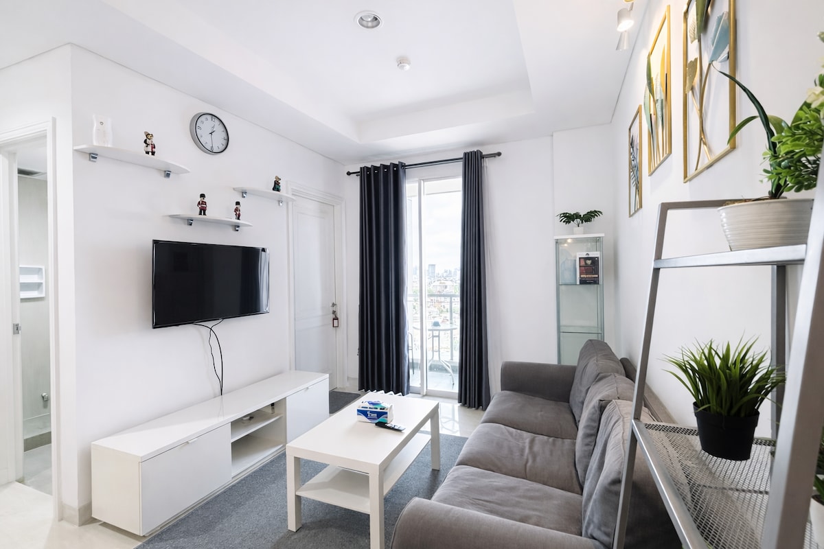 Refúgiate en un oasis de tranquilidad donde las líneas limpias, los materiales naturales y una armoniosa paleta de colores crean una sensación de serenidad. Este alojamiento en Airbnb cuidadosamente diseñado es un remanso de simplicidad y funcionalidad, que ofrece una escapada tranquila del bullicio urbano. Con acceso directo al centro comercial Central Park, estás a solo unos pasos de un mundo de compras, restaurantes y entretenimiento. Tanto si te apetece ir de compras como dar un paseo por el acuario de Yakarta, todo está a la vuelta de la esquina.