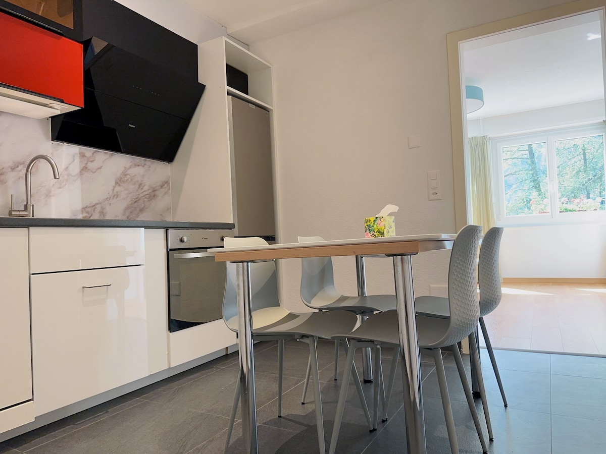 Conéctate con el moderno departamento amueblado . Ya sea a corto o largo plazo, te ofrecemos un hogar acogedor para que te sientas bien. El edificio se encuentra a solo tres minutos a pie de la estación de tren de Leimbach. Desde allí se puede llegar al centro de la ciudad de Zúrich en tren en solo diez minutos.