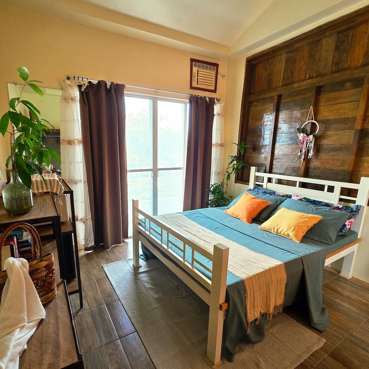 Acogedor dormitorio con amplio balcón que ofrece vistas al atardecer sobre granjas, colinas y molinos de viento. Perfecto para aquellos que quieren experimentar la vida relajante, rural, ¡pero cómoda! en la localidad del parque eólico de Guimaras. - Aparcamiento. - Aire acondicionado. - balcón - Jardín compartido. - Toallas y artículos de aseo - Wifi - placas, utensilios. - microondas Actualmente no podemos proporcionar comidas. Estamos ubicados en Brgy. Cabungahan, San Lorenzo, Guimaras.