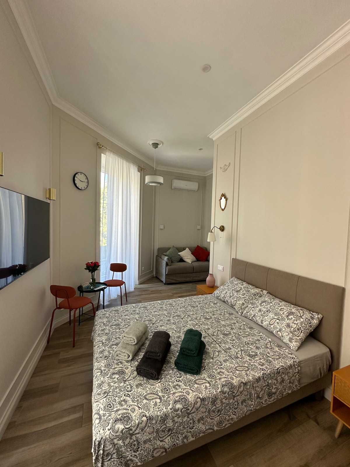 🌟 Estudio moderno con balcón y vistas únicas a la basílica🌟 En el interior, todo está pensado para su comodidad ✨ Aire acondicionado para una estadía agradable ✨ Cocina moderna, amueblada y equipada ✨ Cama doble (160 cm) tamaño queen ✨ Sofá cama, tan cómodo como una cama real ✨ A 5 minutos de la estación de tren ✨ A 10 minutos de la playa ✨ Segundo piso con ascensor ✨ Smart TV 📍 Segundo piso con ascensor 👉 Ideal para una pareja, una familia pequeña o una estadía con amigos, el estudio tiene capacidad para 3 personas