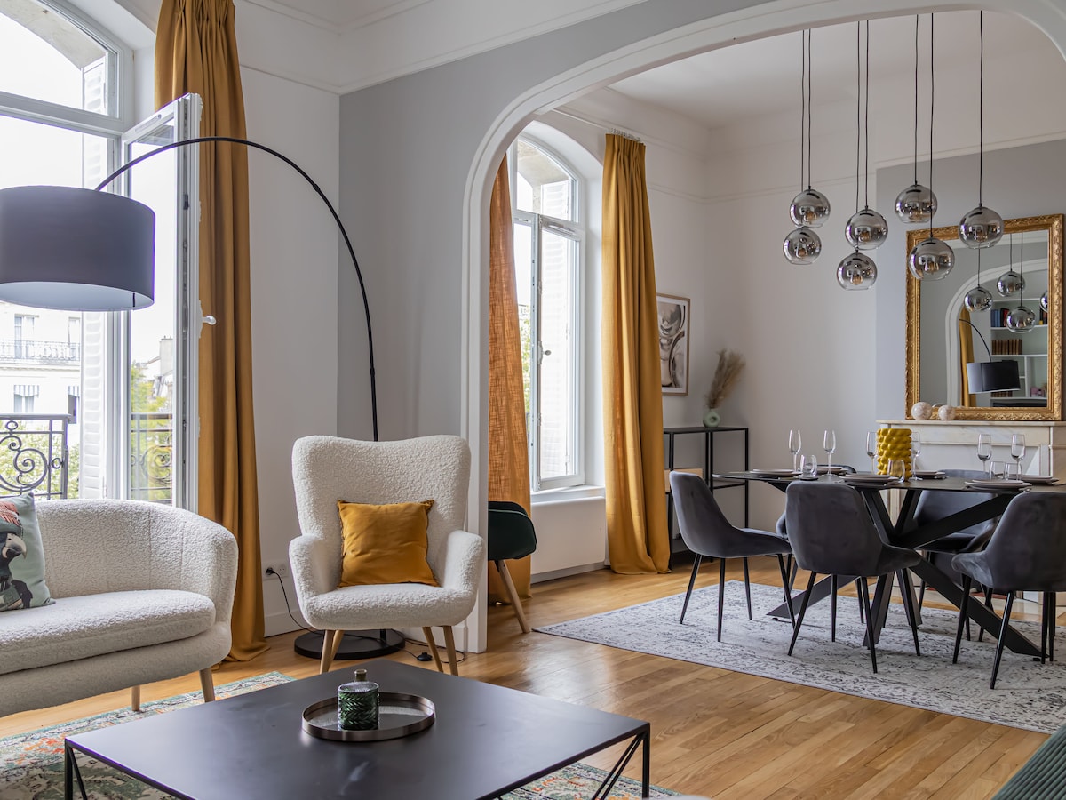 SARAZIN es un apartamento de huéspedes de 4 estrellas, con capacidad para 6 personas, situado en el primer piso de un pequeño edificio de 3 viviendas. Su superficie de 110 m² y sus instalaciones invitan a compartir, a la convivencia y al bienestar. Reúnase con su familia o amigos para pasar una estancia agradable en Reims. Situado en pleno centro, cerca de la plaza del Foro, podrá realizar la mayoría de sus visitas a pie. Todas las tiendas y restaurantes están en las inmediaciones.