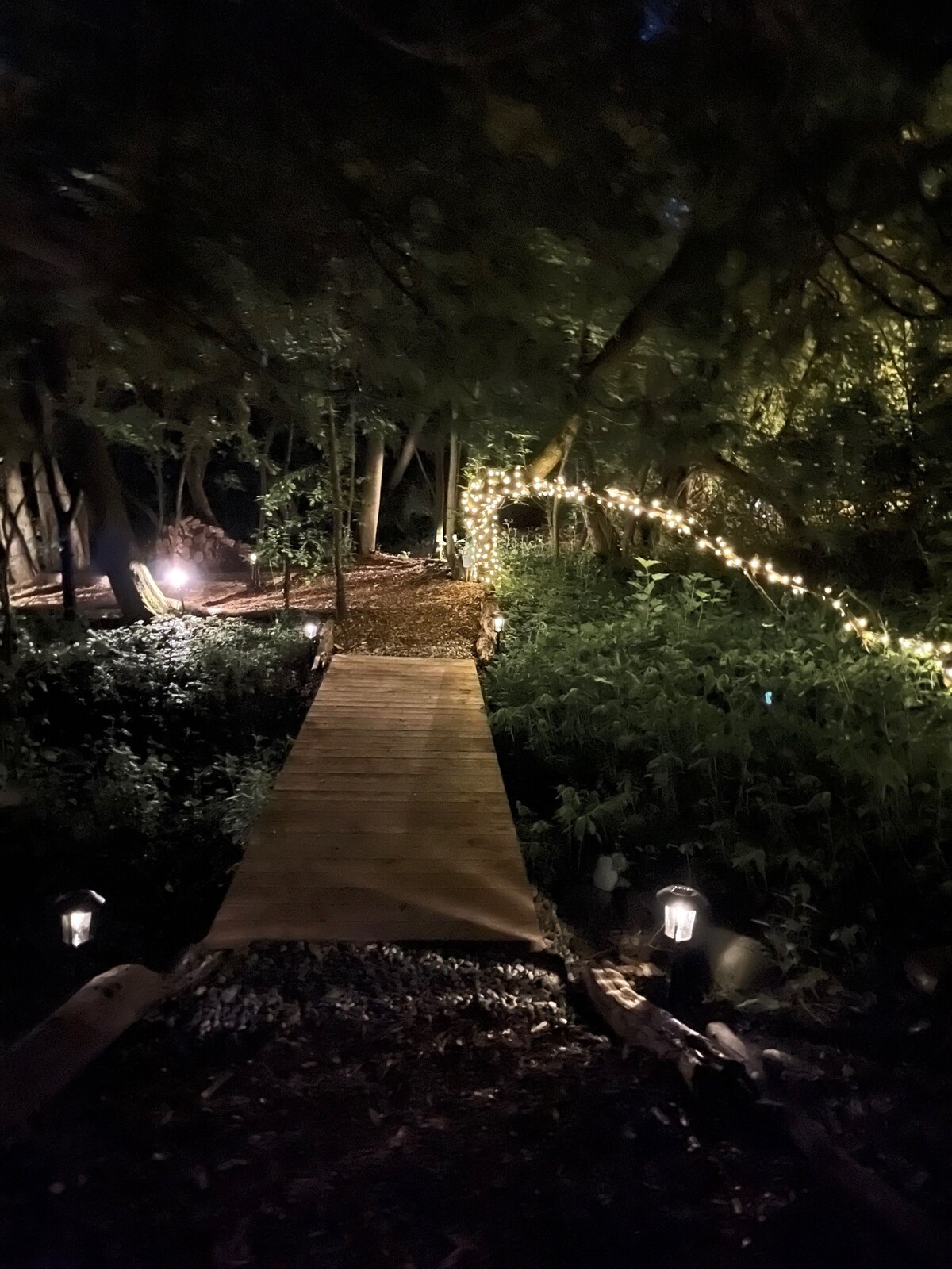 Campo con mesa de billar, baloncesto, fogata, Erin