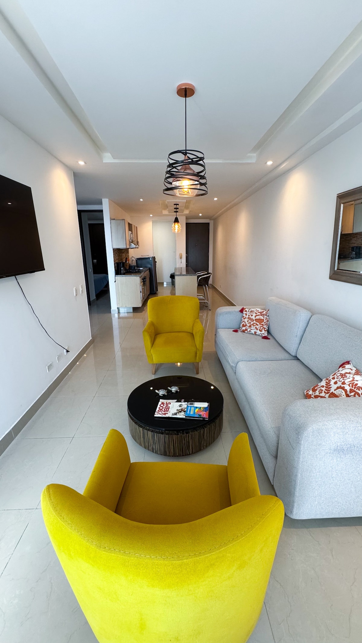 Hermoso apartamento en zona norte de Barranquilla sobre la Cra 46 (Vía al Mar hacia Cartagena). Cuenta con 2 habitaciones con baño y clóset privado, Smart TV. 6 camas. Baño social, estudio, sala con y comedor. Cocina full dotada y torre de lavado, planchado y tres AA. Apartamento PET FRIENDLY con cama y platos para sus mascotas. Nuevo, tranquilo, con áreas comunes modernas como gimnasio y piscina. Ten en cuenta que debes enviar tu documentación previo check in (leyes colombianas).