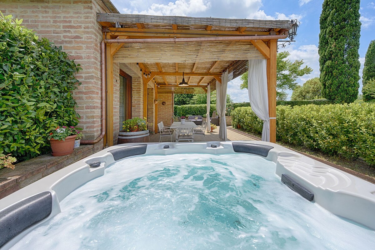 Set in a picturesque hamlet, overlooking the Chianti hills, this charming country house is just 10 minutes from Siena and Castellina in Chianti. Recently renovated, it blends authentic Tuscan charm with modern comforts. The house features two bedrooms, two bathrooms, a cozy living area and a fully equipped kitchen with a dishwasher, two fridges, and a washing machine. Outside, enjoy a beautiful garden and relax in the outdoor marble hot tub, soaking in the breathtaking views.