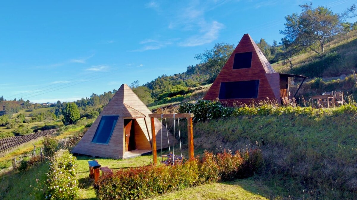 !Descubre la magia del altiplano boyacense 🏔️ en **Pirámides del Cielo 🔺**. Nuestras cabañas, con diseño único y baño privado 🚿, están rodeadas por la Laguna de Tota 🌊, el aire puro y paisajes que te roban el aliento 👀✨. Aquí puedes relajarte con tu familia o amigos 🌿, traer a tu mascota 🐾 y disfrutar de WiFi 📶, restaurante a domicilio 🍴, mercado 🛒, fogata 🔥, caminatas ecológicas 🚶♀️ y deliciosos asados 🍖. recuerda que incluye las dos cabañas por el mismo precio.