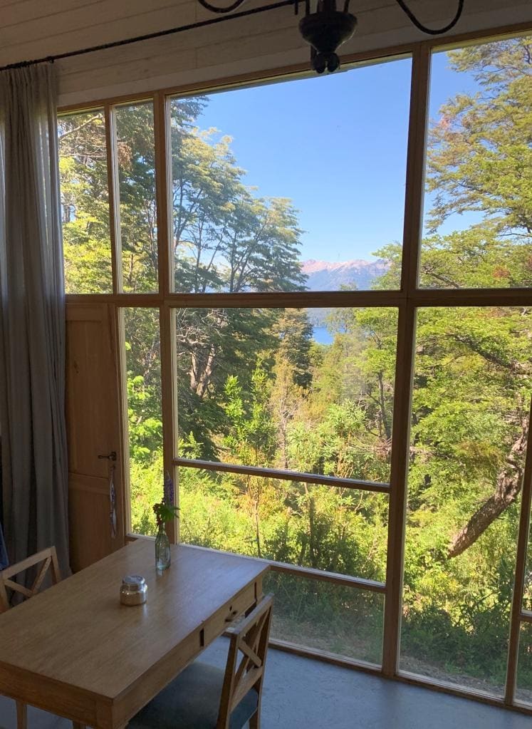 Cálida cabaña de estilo rústico a orillas del lago Nahuel Huapi con hidromasaje, hogar a leña, y deck. Monoambiente creado para el relax y el romanticismo con vista al amanecer y salida de la luna sobre el lago. Smart TV e internet por FIBRA OPTICA con wifi para trabajar. Una kitchinette con todo lo necesario, incluyendo cafetera dolce gusto. Caja de seguridad para resguardar tus notebooks al ir de paseo. Baño completo. Pool, ping-pong. Playa: Kayak y standup paddle. Desayuno continental.