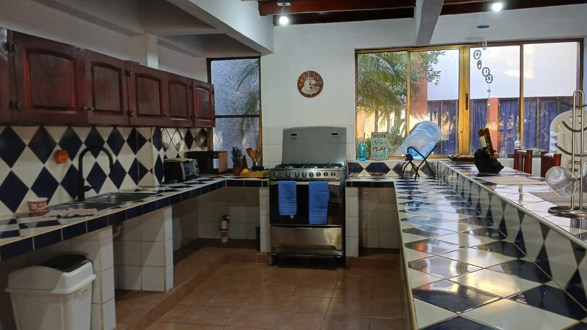 Beautiful colonial home with a spacious, plant-filled interior patio and fountain/dipping pool. A safe, quiet haven in the centre of Leon, three blocks from the Cathedral - a perfect location from which to explore. Ceiling fans throughout and all the bedrooms have additional brand new air conditioning units. The kitchen has new appliances and is well equipped for all your needs. A 1000 gallon tank ensures you have water all the time even when the public supply gets cut off by the town.