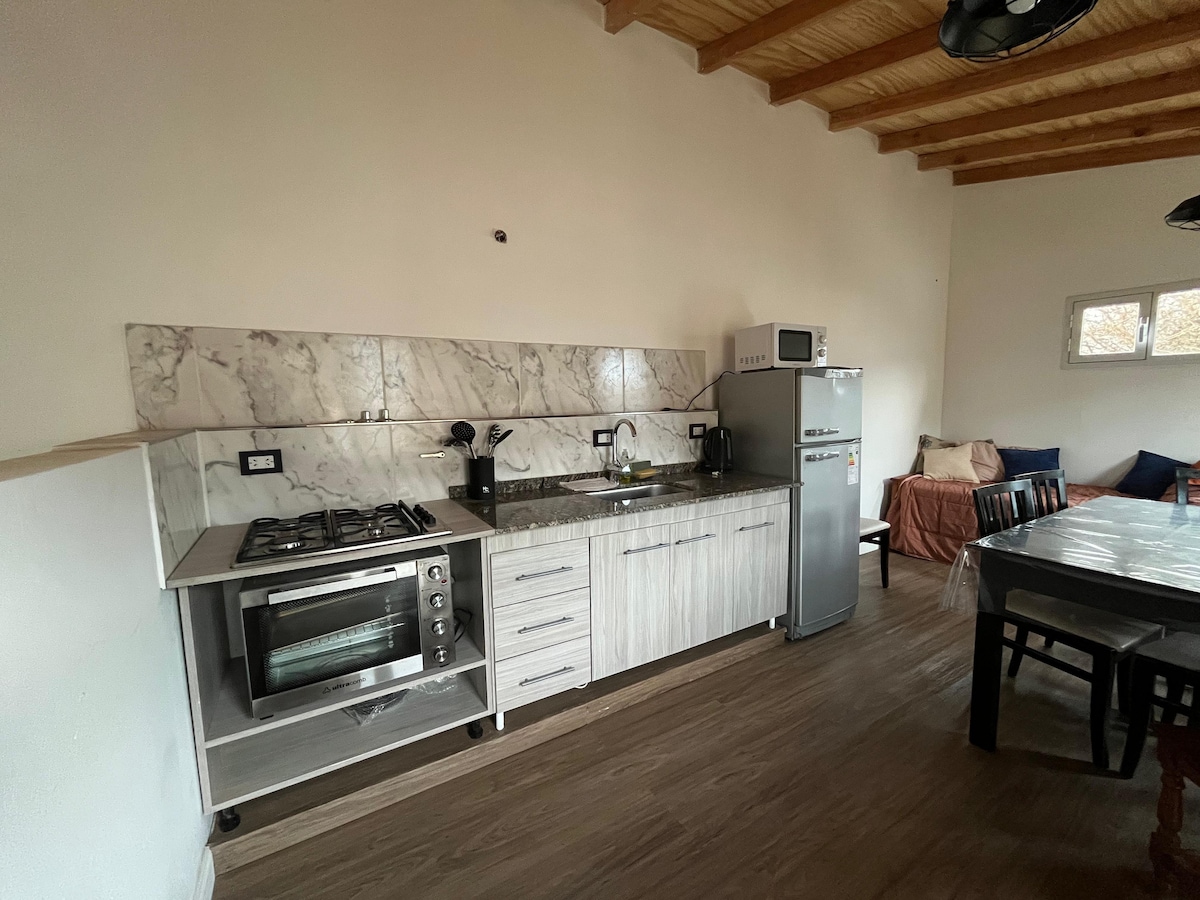 Estudio Vintage, cálido y luminoso, ideal para parejas, viajeros solitarios o escapadas tranquilas. Está ubicado dentro de una propiedad familiar rodeada de naturaleza, con mucha luz, vista verde, un arrollo que recorre la propiedad . Este solía ser el comedor de Lá casa de mis abuelos , hoy adaptada a este pequeño estudio independiente con detalles en madera, objetos antiguos y libros que le dan un ambiente acogedor. Estamos en barrio lujan. Zona ideal para hacer treking o bicicleta