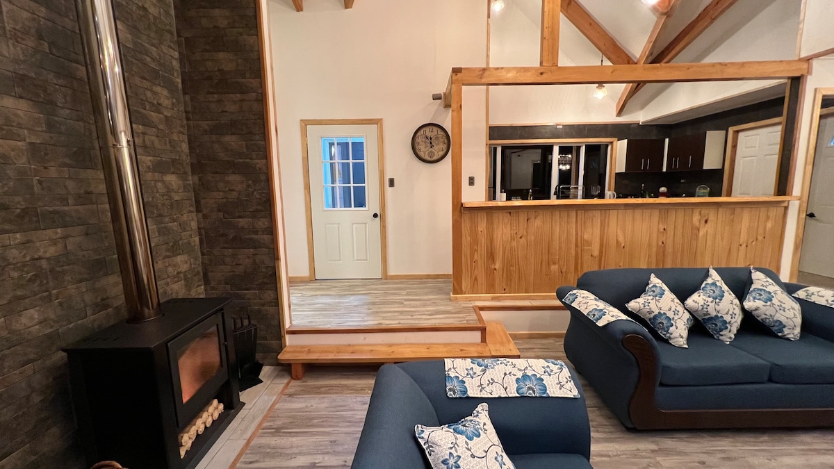 Cabaña NUEVA y completamente equipada. Crea recuerdos inolvidables en este alojamiento único y familiar. Te permitirá un contacto directo con la flora y fauna nativa, podrás sentir la energía vital del BOSQUE rodeada de canelos, arrayanes, ulmos, etc. Disfrutar del canto del Chucao y vuelo de pájaros nativos. Podrás participar de actividades propias del campo y caminatas guiadas, por el bosque y alrededores.