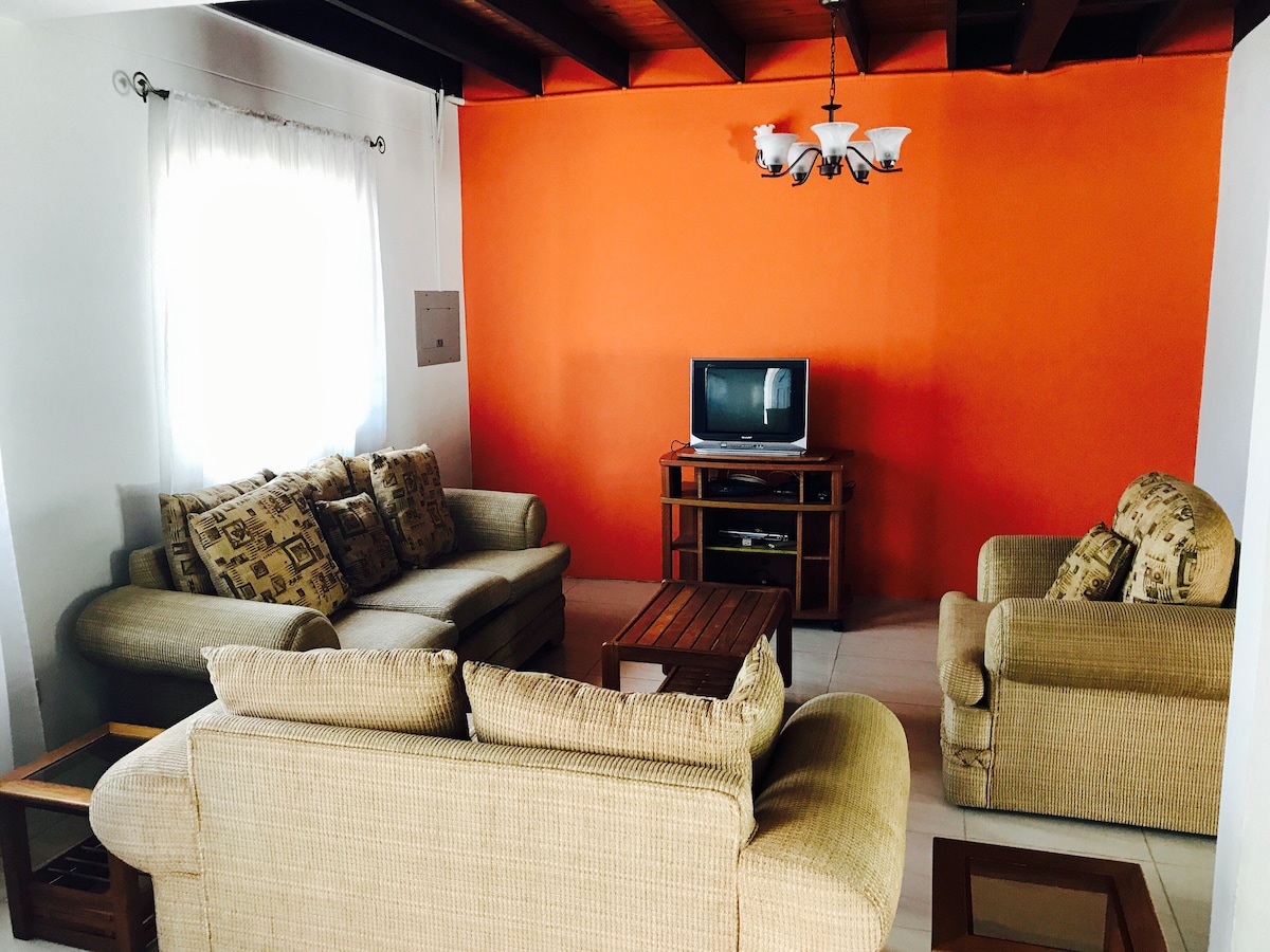 Este es un apartamento de 2 dormitorios con una cocina totalmente equipada, 1 baño, una sala de estar/comedor y un pequeño porche. Hay estacionamiento para 2 vehículos. Se encuentra en una cuadra tranquila a 2 minutos a pie de la calle principal del centro de la ciudad. Desde aquí se puede acceder a los supermercados, tiendas, bancos, centros comerciales, transporte público, restaurantes, taxis, etc. Es un vecindario agradable y seguro. Damos la bienvenida a personas de todas partes del mundo, ya que nos gusta conocer y conversar con la gente.