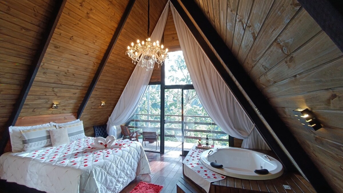 ¡Ven y disfruta de esta experiencia única! Una cabaña aislada en la naturaleza y con la vista más impresionante de la famosa Pedra do Baú. Todo esto desde el interior de nuestro encantador chalet A-Frame ubicado en Gonçalves, al sur de Minas Gerais. Una cabaña que combina, en la medida correcta, con una arquitectura audaz con el encanto y la vida del campo sin perder la modernidad y la sofisticación de la ciudad. Es ideal para parejas apasionadas tener una experiencia sensorial única.