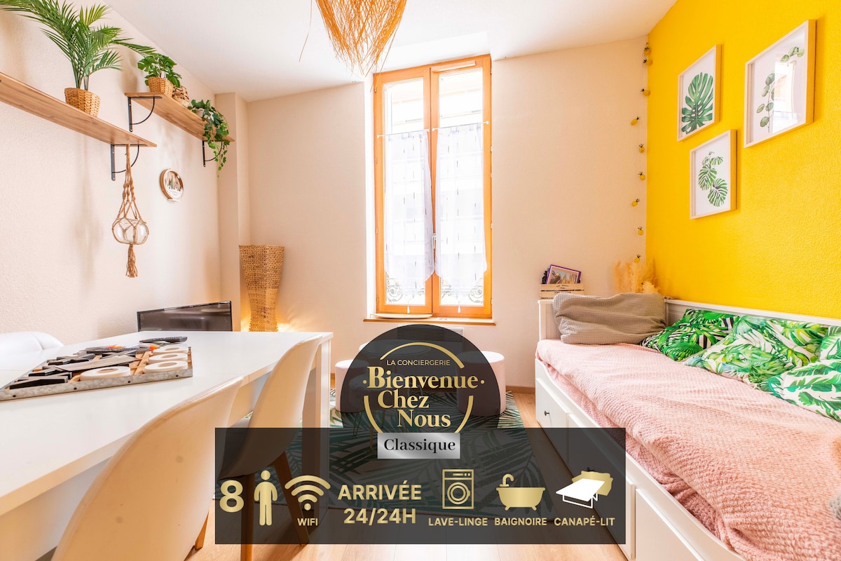 Disfrute de un alojamiento reformado, elegante y céntrico, con una sala de estar luminosa con cocina abierta y dos dormitorios con camas dobles tranquilas. La cocina está equipada con placa de inducción, horno, lavavajillas y microondas. Hay una lavadora-secadora disponible. El apartamento dispone de balcón y plaza de aparcamiento en el sótano. Se encuentra en el centro de la ciudad a 5 minutos andando de la Place de Jaude. Reserva para 1 a 4 personas para un mínimo de 2 noches
